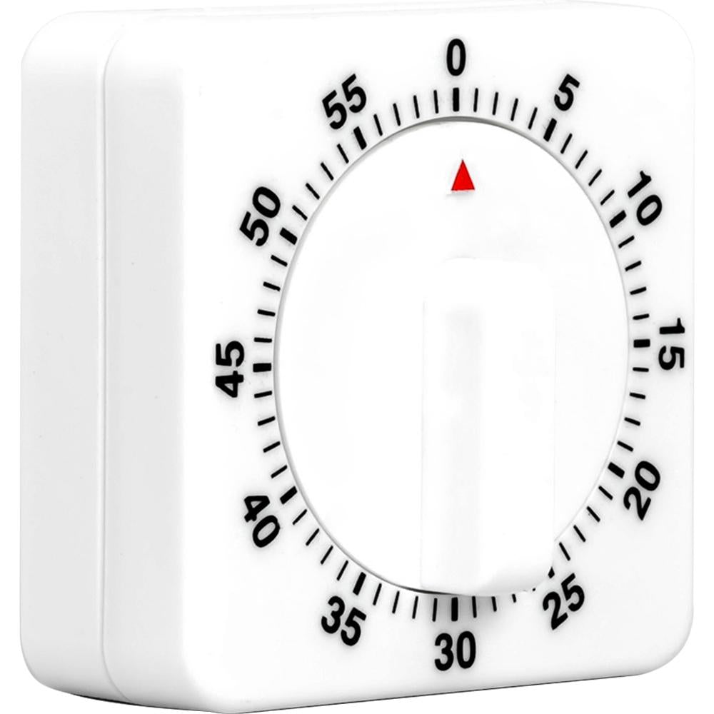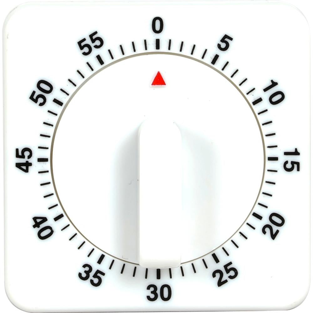 Easily set the time needed from 1-60 minutes and it will accurately countdown to zero. Each white timer is mechanical, meaning no batteries are needed. Stand your timer upright on the counter, stove, or lay on its back on top of any flat surface.