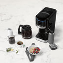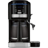 Experience the ease and convenience of a full-size coffeemaker and hot water system in one. Full programmability, including 24-hour advance brew, 1 to 12 cup settings, and adjustable carafe temperature, ensures that coffee is always hot and ready to be enjoyed. Dual filters eliminate impurities for fresh, robust coffee flavor. Designed to heat up in a hurry, the hot water system features a separate reservoir with a spout that easily dispenses hot water directly into a cup for hot tea or cocoa, or into a bowl for oatmeal, soup, ramen, and more. A drip tray prevents spills and detaches easily to make room for taller cups. The sleek, compact design with the two reservoirs side by side conserves countertop space while complementing any kitchen dƩcor.