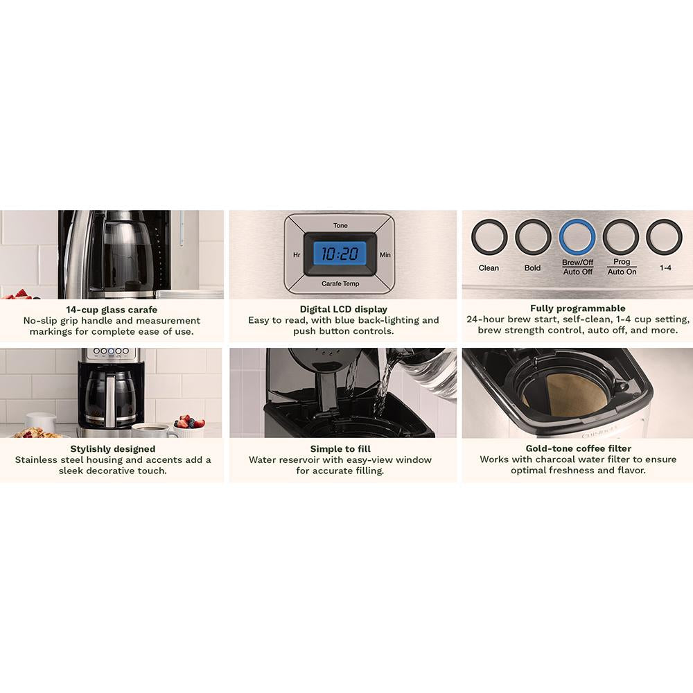 - The Cuisinart 14-Cup Programmable Coffeemaker is equipped with cutting edge coffee technology to give you hotter coffee without sacrificing taste. Choose a flavor profile with regular or bold strength control, and set brew-time up to 24-hours ahead.