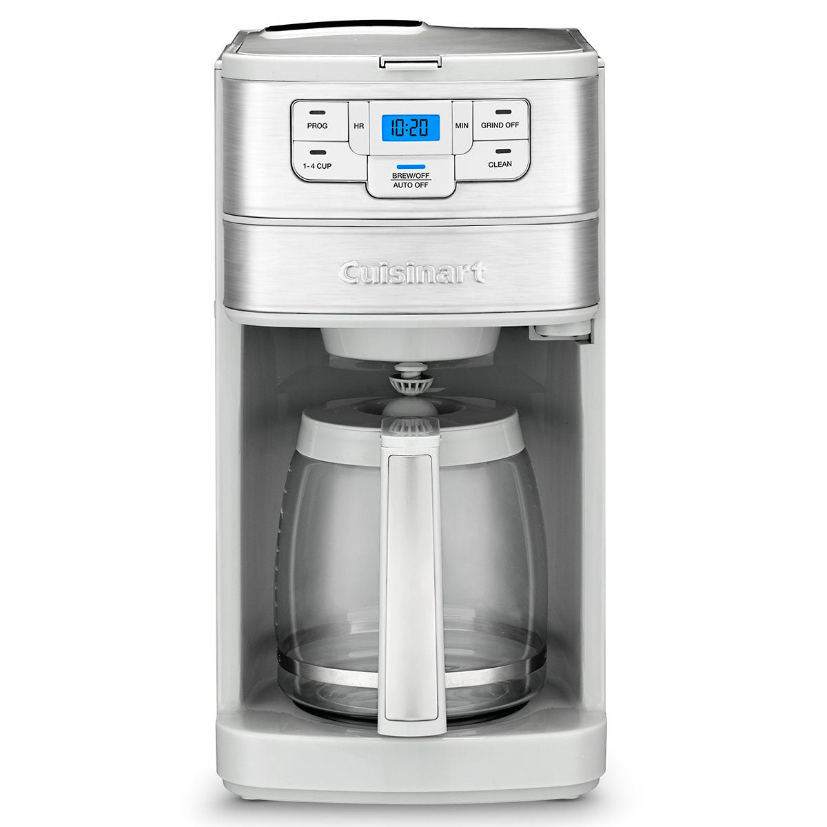 Making fresh-ground coffee at home is easy with the Cuisinart Automatic Grind & Brew 12 Cup Coffeemaker. Designed with a powerful blade grinder that automatically grind beans just before brewing, it does all the work for you with programmable 24-hour brew start, adjustable auto-off, and 1-4 cup setting options. Preset to have a pot of hot, delicious coffee ready first thing in the morning. Don't want to wait for a full pot to brew? Use the Brew Pause⢠feature to enjoy a cup without interrupting the brew cycle. Have pre-ground coffee? Use the grind-off option to brew it to perfection. Versatile and simple to use, the Automatic Grind & Brew spares you the trip to the coffee shop. Maximum convenience and fresh, full-bodied flavor assured!
