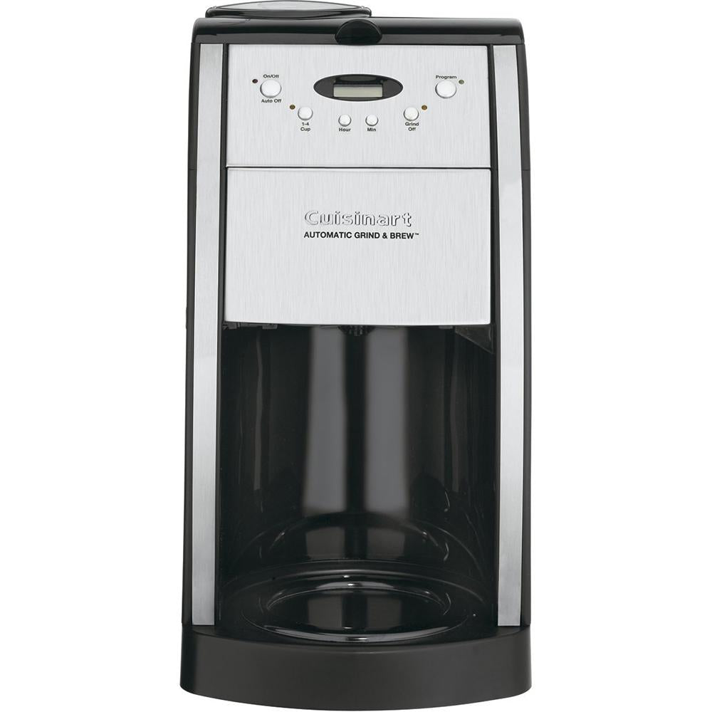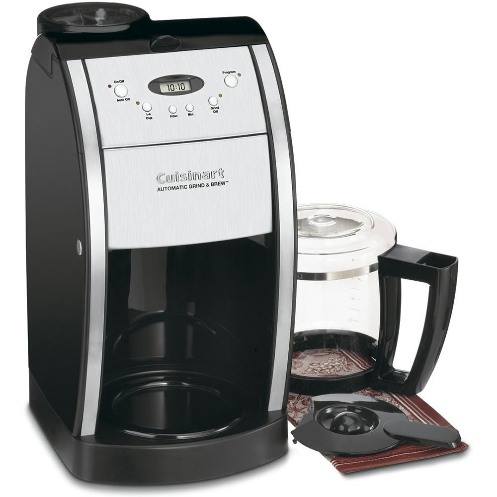 The Grind & Brew Coffeemaker from Cuisinart automatically grinds the beans right before brewing to produce a fresh and flavorful pot of coffee. Fully programmable with a brushed metal finish, this deluxe 12-cup coffeemaker will be right at home in any modern kitchen.