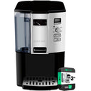 Removable water reservoir and drip tray under coffee dispenser allows for easy set up during your busy morning
