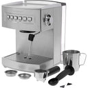 Programmable espresso maker brews single or double espresso and has 15 bars of pressure.