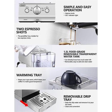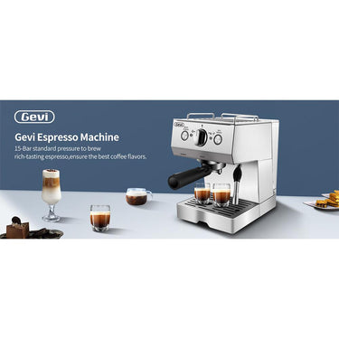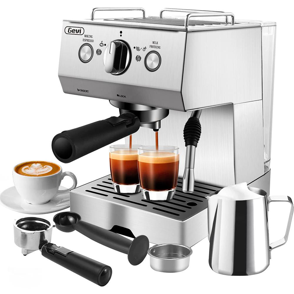 - Gevi Espresso Machine 15 Bar Pump Pressure, Cappuccino Coffee Maker with Milk Foaming Steam Wand for Latte, Mocha, Cappuccino, 1.5L Water Tank, 1100W, Black