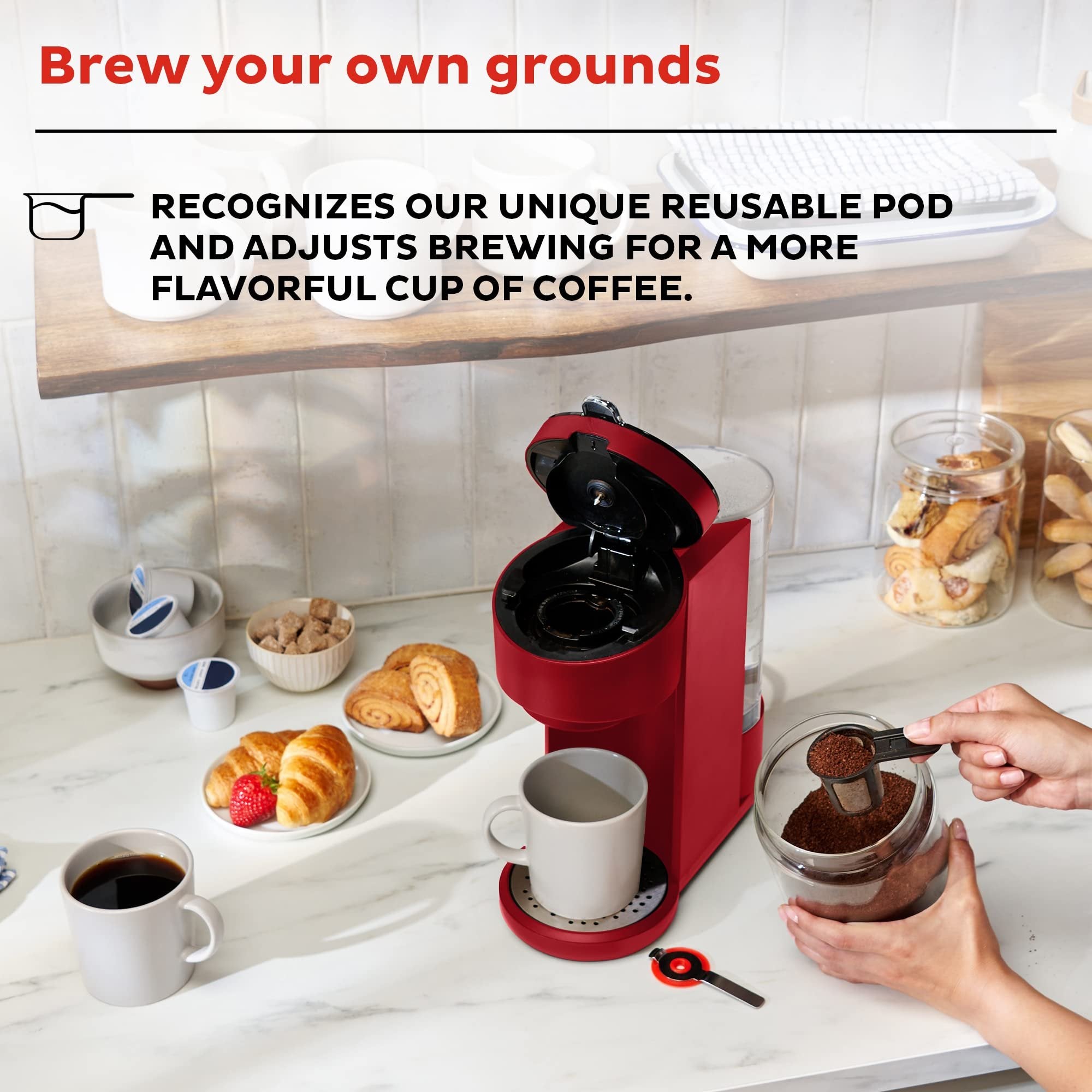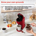 - 2-in-1 Functionality: Compatible with K-Cup® pods and your own ground coffee with the included reusable pod