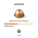 - Melozio is here to delight you with its honeyed sweetness and the hallmark smooth cereal note of the blend's Brazilian Bourbon Arabica beans.