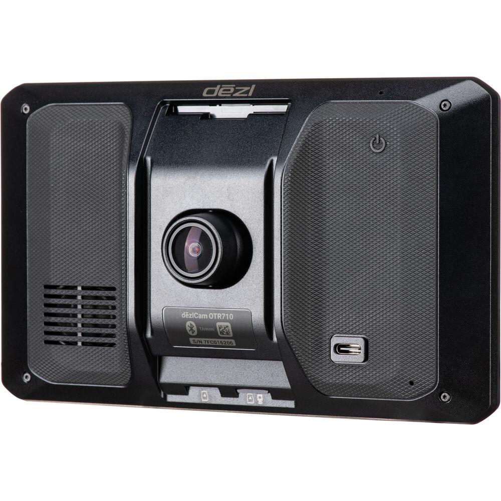 The dēzlCam OTR710 navigator is trucking simplified. This 7” navigator features a built-in dash cam (Some jurisdictions regulate or prohibit use of the camera function of this device. It is your responsibility to know and comply with applicable laws and rights to privacy in jurisdictions where you plan to use the camera function of this device) for peace of mind, custom routing (Not available in all areas. Entering your truck’s profile characteristics does not guarantee your truck’s characteristics will be accounted for in all route suggestions. Always defer to all posted road signs and road conditions) based on the size and weight of your rig, strategic suggestions for fueling and breaks, map updates for North America and leading-edge arrival planning.