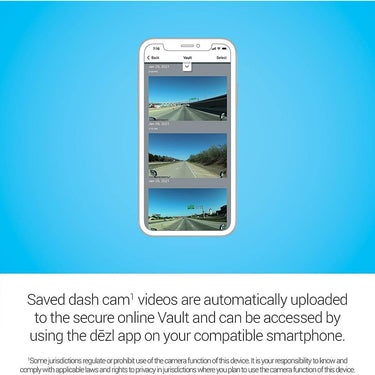 Saved videos are automatically stored securely in the online Vault and can be accessed using the Garmin dēzl™ app on your compatible smartphone. An active connection with Wi-Fi® technology lets you share video clips with others by sending a link and passcode.