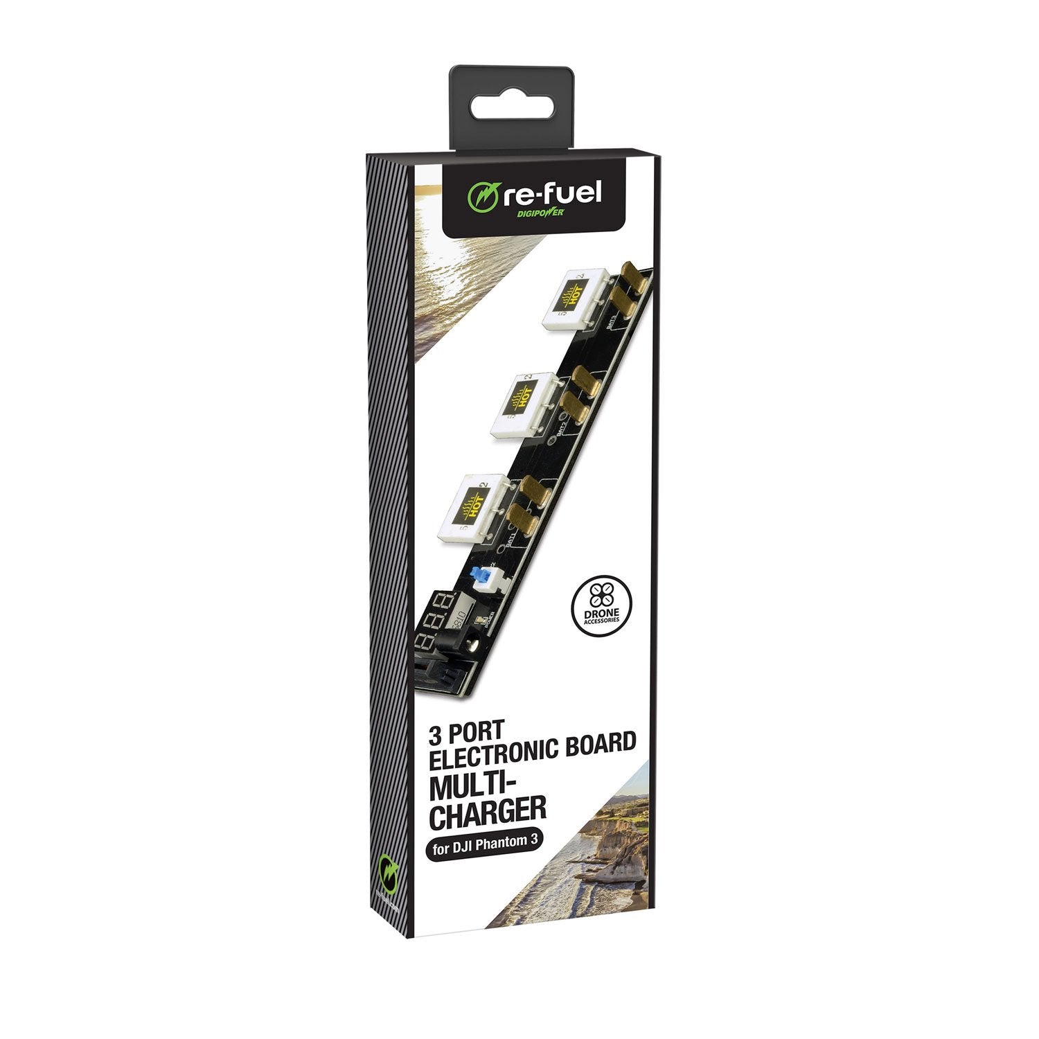 Limiting Charge Protection Supports Charging 3 Batteries at the Same Time, LED Display Charging Voltage and Charging Time Remaining Connect the Original, charging Adapter to Charge. You can use this three-port multi-charger as a replacement or a spare.