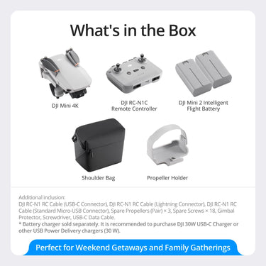 DJI Mini 4K offers an incredible way to capture the world from above in 4K. Weighing less than 249 grams makes DJI Mini 4K a great companion on any outing. It's also easy to use and boasts a 31-min max flight time, a 10km (6.2137 miles) max transmission range, incredible 4K footage, and much more.
