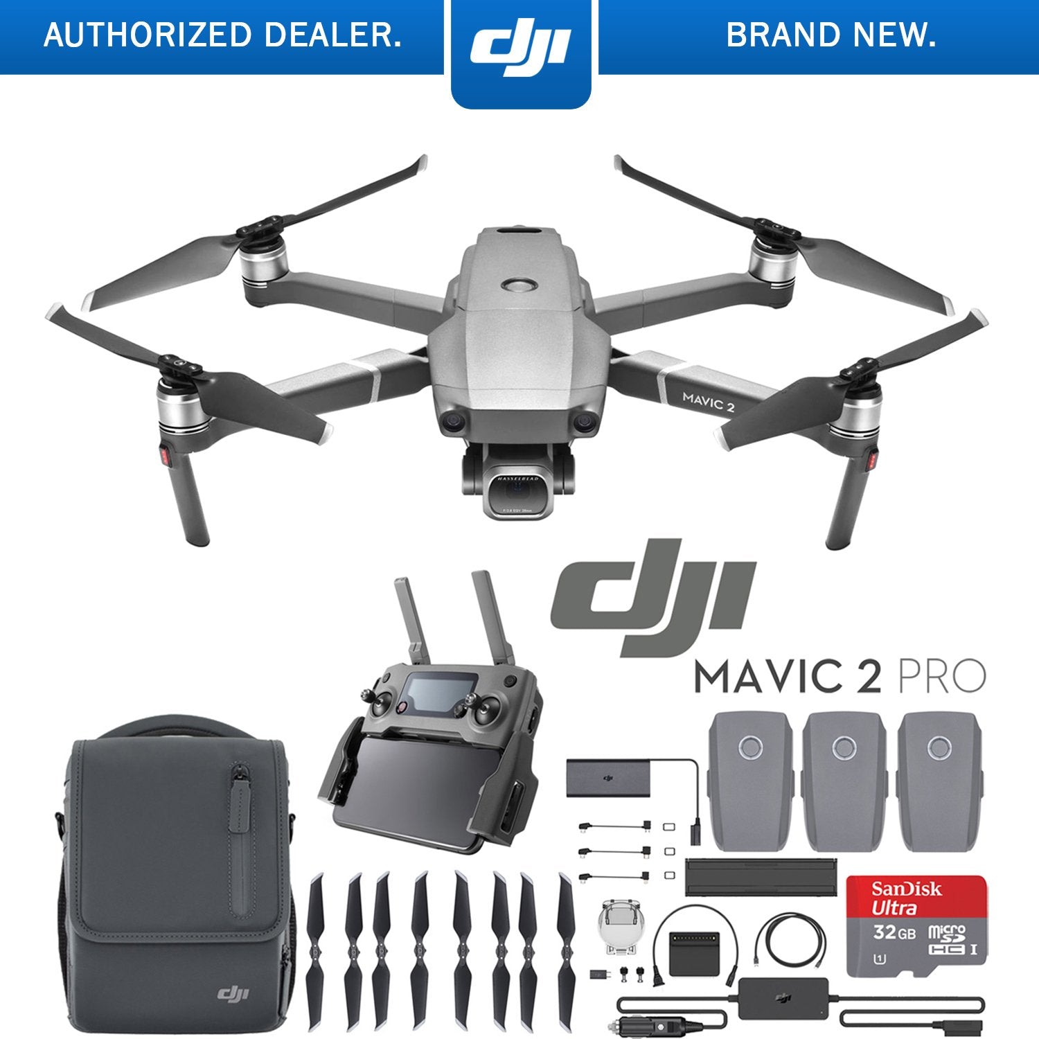 DJI Mavic 2 Pro Drone Fly More Kit with Hasselblad Camera CMOS Sensor & Memory Card