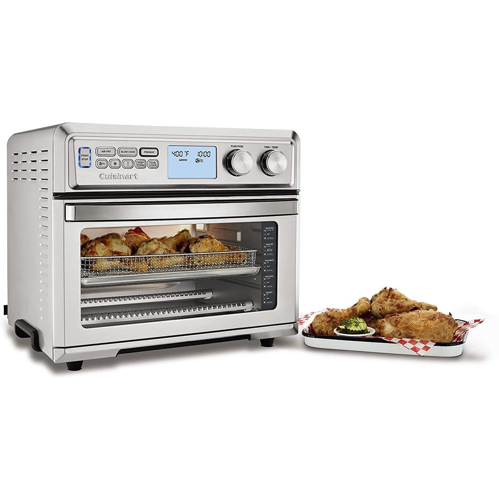 Enjoy the crunch of fried food without the extra calories and messy cleanup. This extra-large Cuisinart toaster oven manages not to overwhelm your countertop and includes a built-in air fryer for a healthier way to fry. In addition to toaster oven functions like baking, broiling and toasting, the countertop cooker makes delicious crispy bacon, chicken wings, tortilla chips and French fries with less fat and a lighter texture than deep-fried versions.