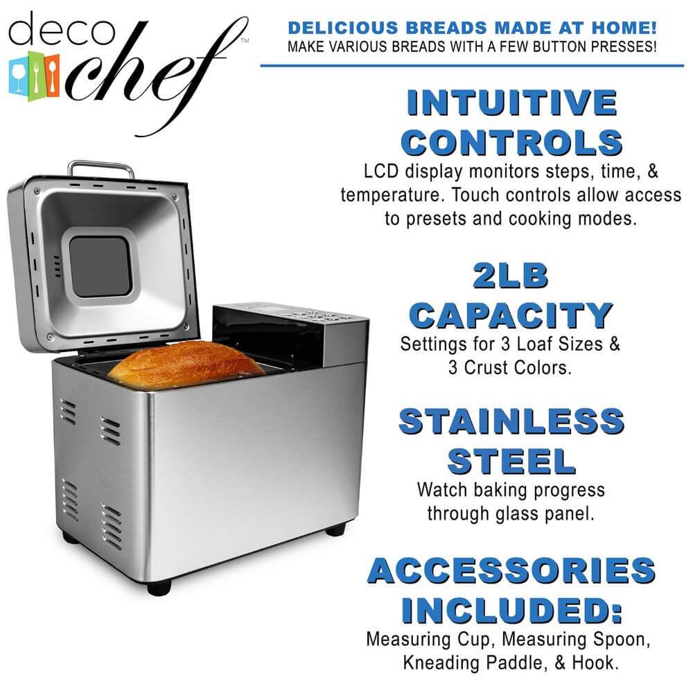 Deco Chef 2 LB Stainless Steel Bread Maker with 12 Piece Stainless Steel Knife Set Bundle