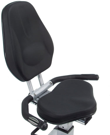 The padded seat and seatback are designed to place you in a semi-reclined position, letting you comfortably tone and strengthen all the major muscles in your hips, thighs and buttocks. For a strenuous upper-body workout, the Elite Total Body Recumbent Bike is equipped with rotating handlebars that work your arms, shoulders, and back while your hands pedal. You can also measure your progress and keep your motivation with the built-in, battery-powered electric monitor, which displays speed, calories burned, distance and heartbeats per minute.