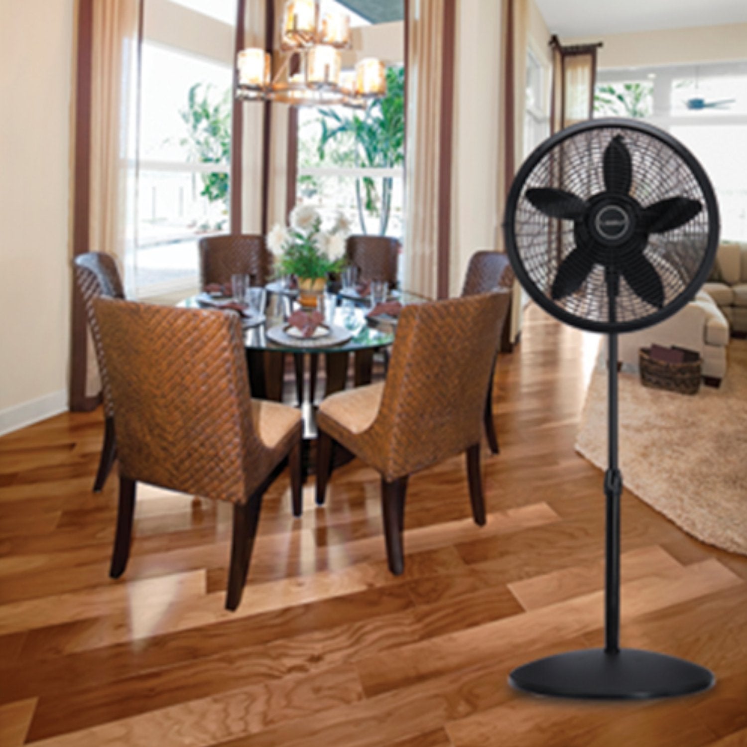 Lasko's 18-inch adjustable elegance and performance pedestal fan quietly cools with three energy efficient speeds and features an elegant grill design.