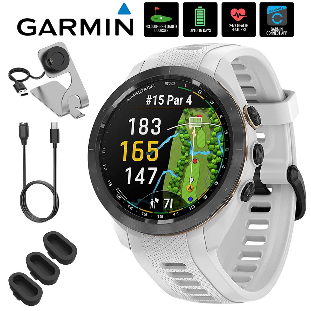 Garmin Approach S70 42mm Premium GPS Golf Watch, White Band + Accessories Bundle