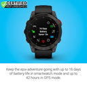 Get up to 16 days of battery life in smartwatch mode and 42 hours in GPS mode.