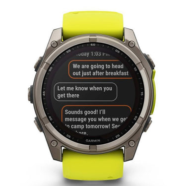 - Garmin Fenix 8 47 mm Solar Sapphire Titanium with Amp Yellow/Graphite Silicone Band