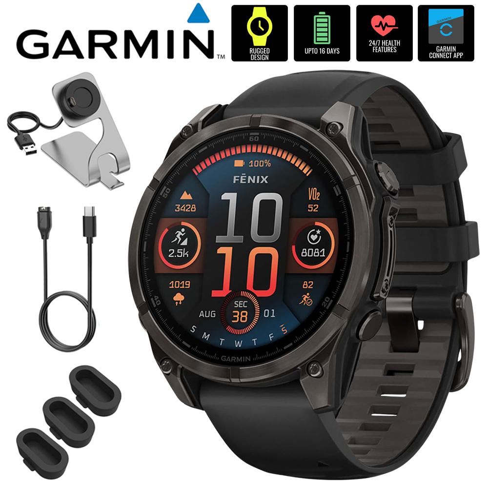 Garmin Fenix 8 47mm Smartwatch, Sapphire, Carbon Gray Titanium + Accessories Bundle