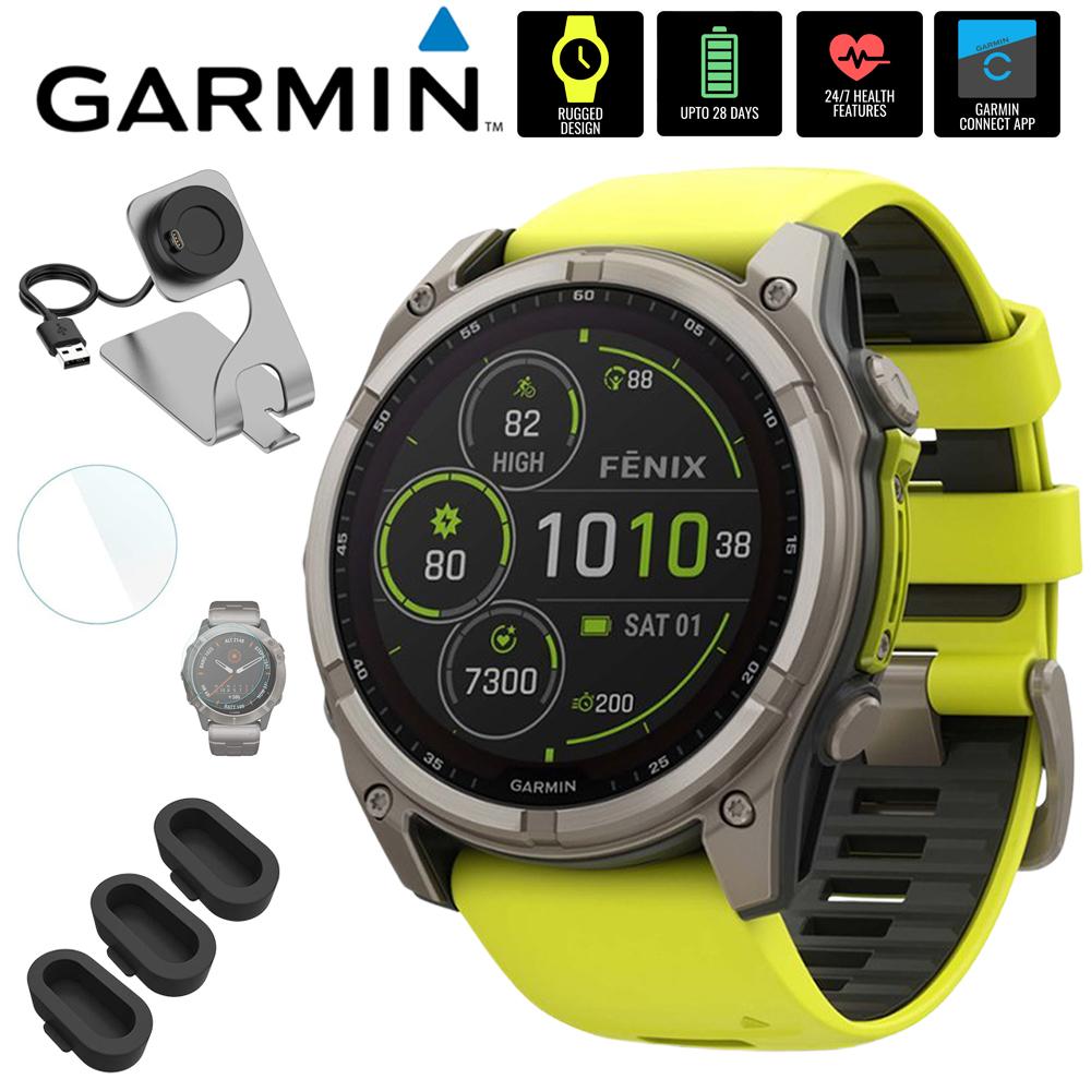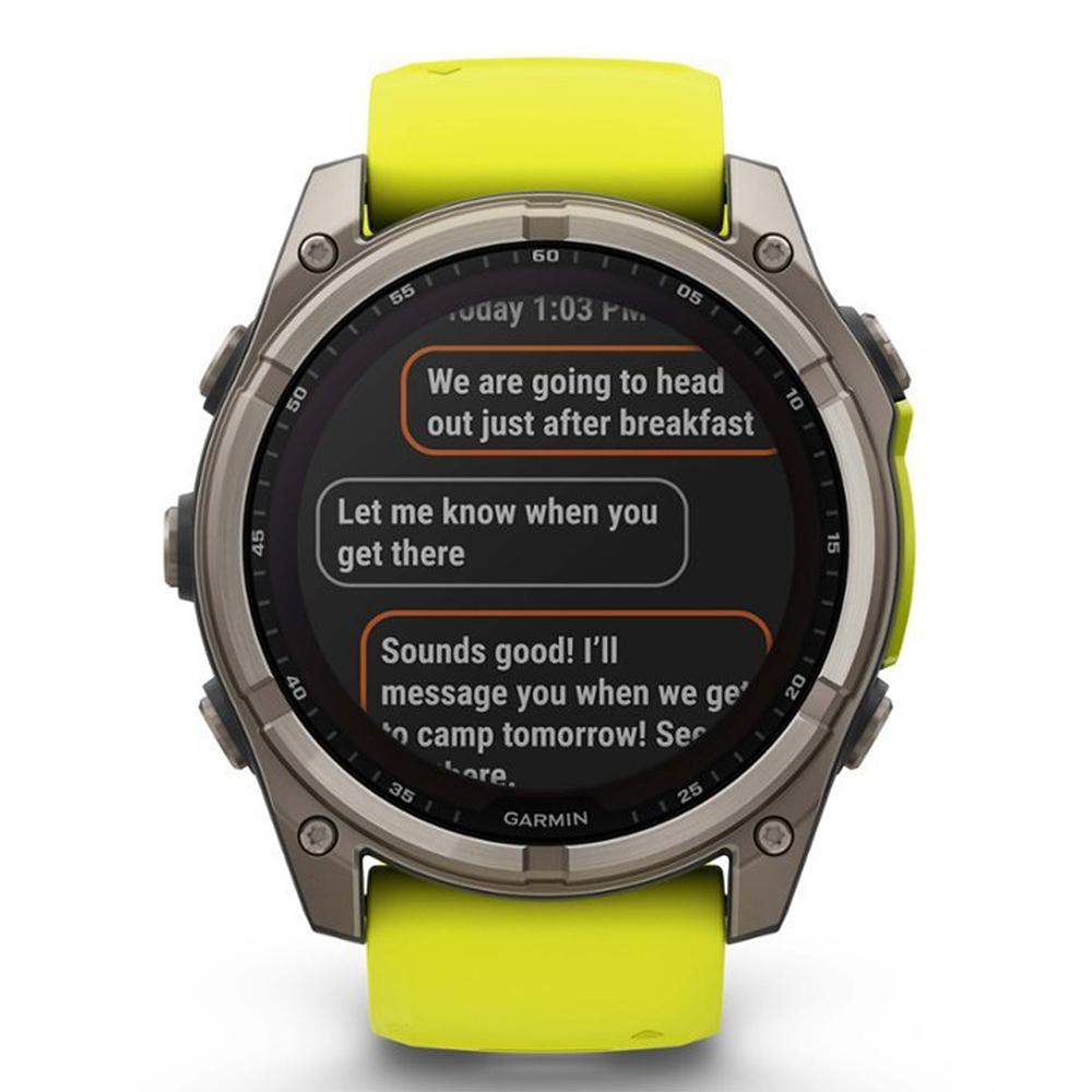 - Garmin Fenix 8 51mm, Solar Sapphire, Titanium with Amp Yellow/Graphite Silicone Band