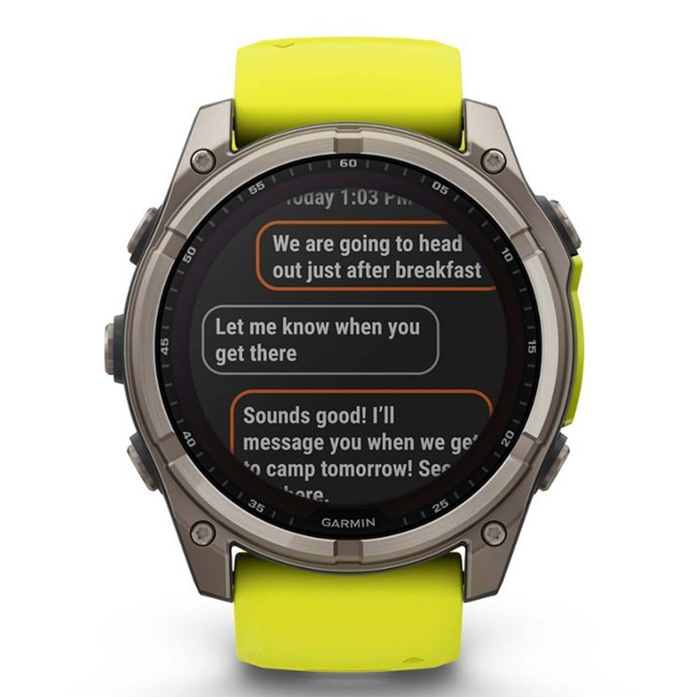 - Garmin Fenix 8 51mm Solar Sapphire Titanium with Amp Yellow/Graphite Silicone Band