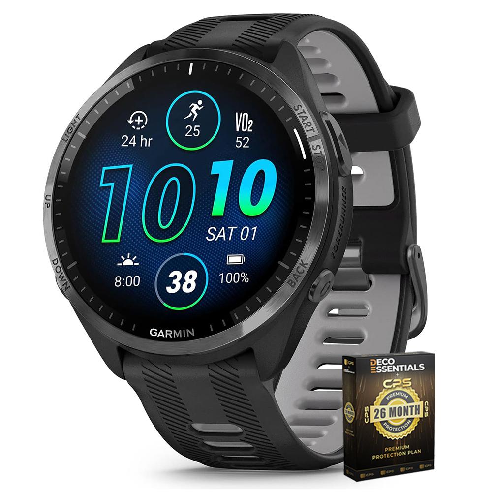 Train brilliantly with Forerunner® 965, the premium GPS running and triathlon smartwatch with a bright AMOLED touchscreen display and lightweight titanium bezel. Wake up to your morning report with HRV status to see health insights with an overview of sleep, recovery and training outlook (data presented is intended to be a close estimation of metrics tracked). The training readiness feature tells you when you’re primed for a productive session — while daily suggested workouts adapt to performance and recovery alongside the race widget, which provides training tips, course details and completion time predictions. Navigate any route confidently with multi-band GPS and full-color, built-in maps. With traditional buttons and a touchscreen display, it’s easy to tap into your training status and know whether you’re training productively, peaking or strained. If you’re pushing to outshine the competition, the Forerunner 965 is there to light up every run with up to 23 days of battery life in smartwatch mode.