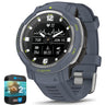 Luminescent analog watch hands in a bold, rugged watch body with dual-layered bezel. Combines a classic analog experience with smart functionality on an easy-to-read high-resolution digital display. Pair to your compatible Android or Apple smartphone to get smart notifications. Pay from your wrist with Garmin Pay contactless payment solutions with a supported country and payment network. With built-in sports apps for everything from strength training to running to mountain biking, you can train your way indoors or out. Explore the outdoors with GPS, GLONASS and Galileo navigation support and built-in ABC sensors. Up to 28 days of battery life in smartwatch mode; up to 25 hours in GPS mode; up to 71 days in battery saver mode. Ruggedly built to MIL-STD-810 for thermal and shock resistance and with a water rating of 10 ATM (Withstands pressures equivalent to a depth of 100 meters)