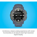 - Garmin Instinct Crossover Rugged Hybrid Smartwatch Analog Hands & Digital Display Blue Granite