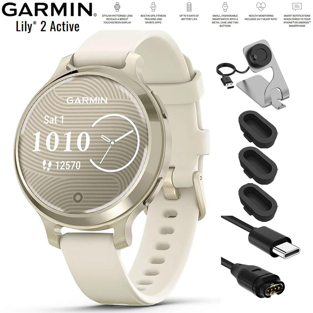 Garmin Lily 2 Active Smartwatch Lunar Gold w/ Bone Silicone Band+Charging Bundle