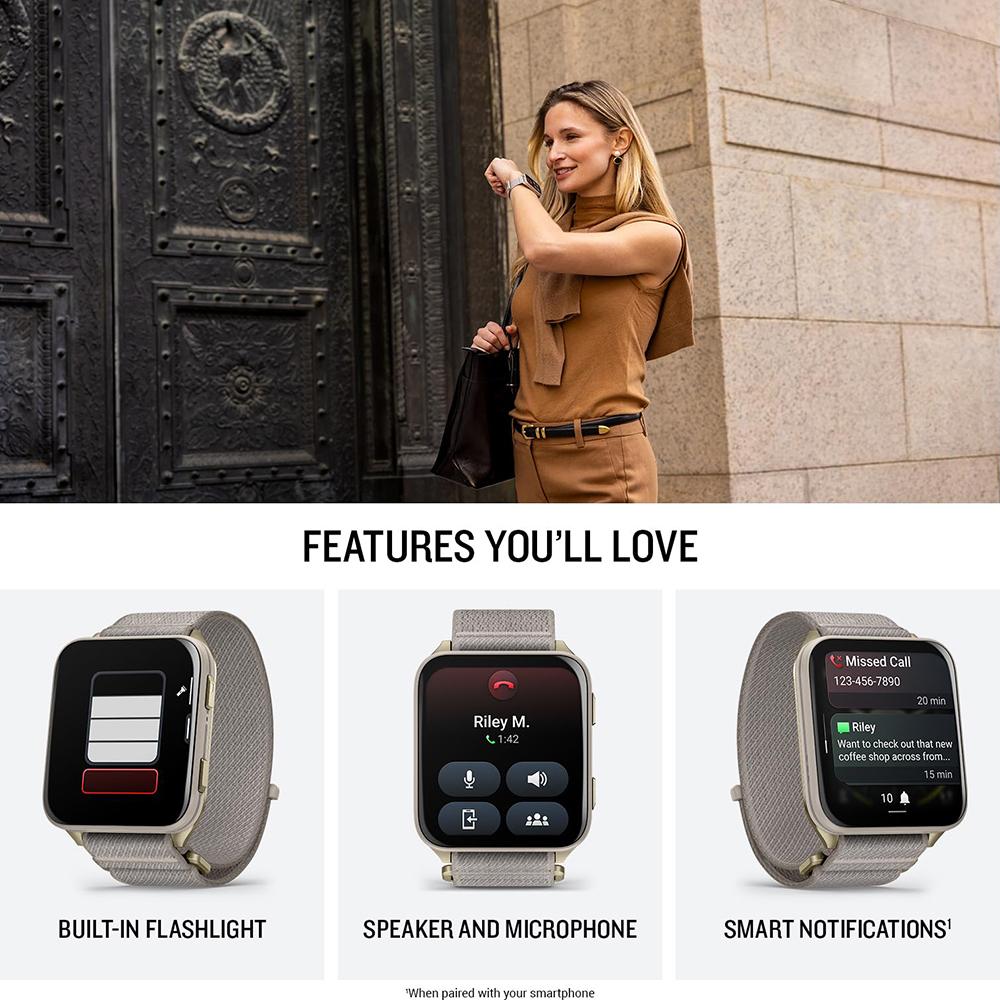 A built-in LED flashlight provides convenient illumination when you need it. Make and take phone calls from your wrist when your watch is paired to your smartphone. You can even control watch functions with voice commands - or use your smartphone's voice assistant to respond to text messages and more.