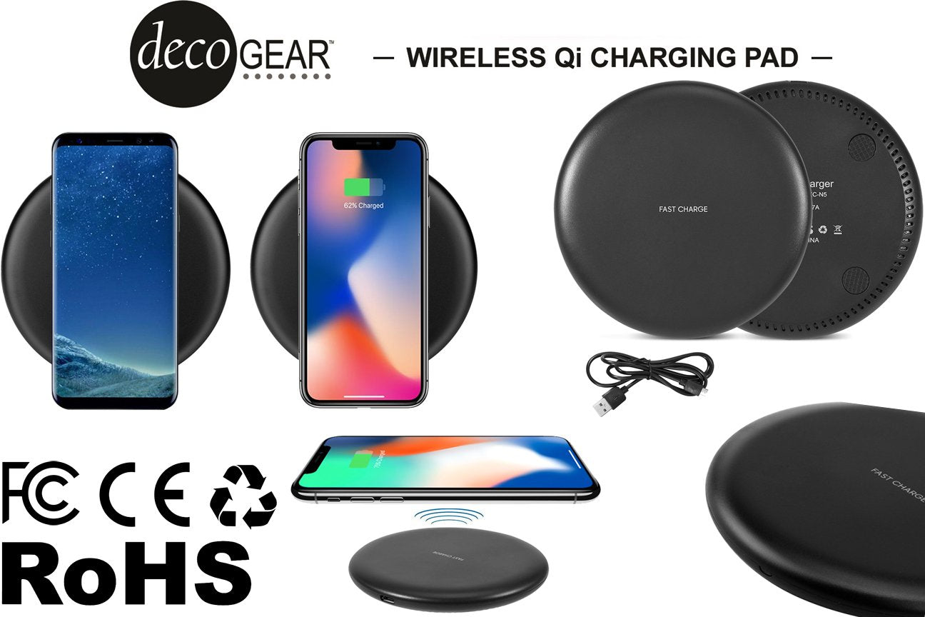 - Deco Gear QI Wireless Fast-Charging Pad in Matte Black - 10W Output