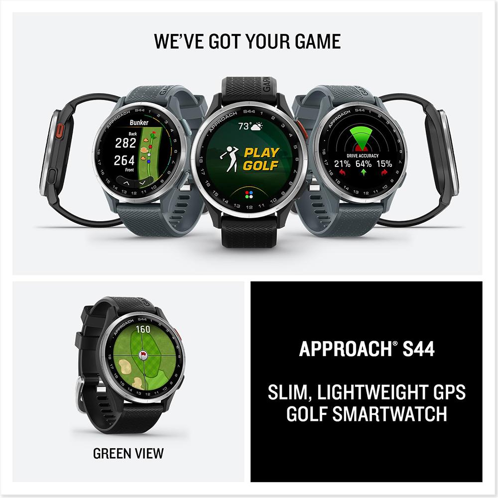 - Garmin Approach S44 GPS Golf Smartwatch, Silver Aluminum Bezel w/ Twilight Band