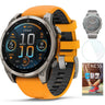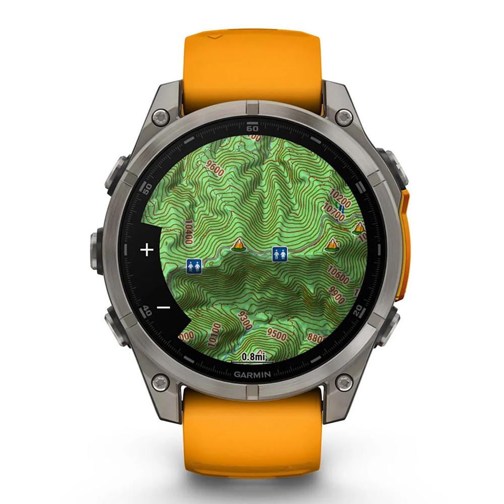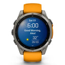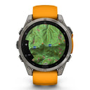 - Garmin Fenix 8 47 mm AMOLED Sapphire Titanium with Spark Orange Silicone Band