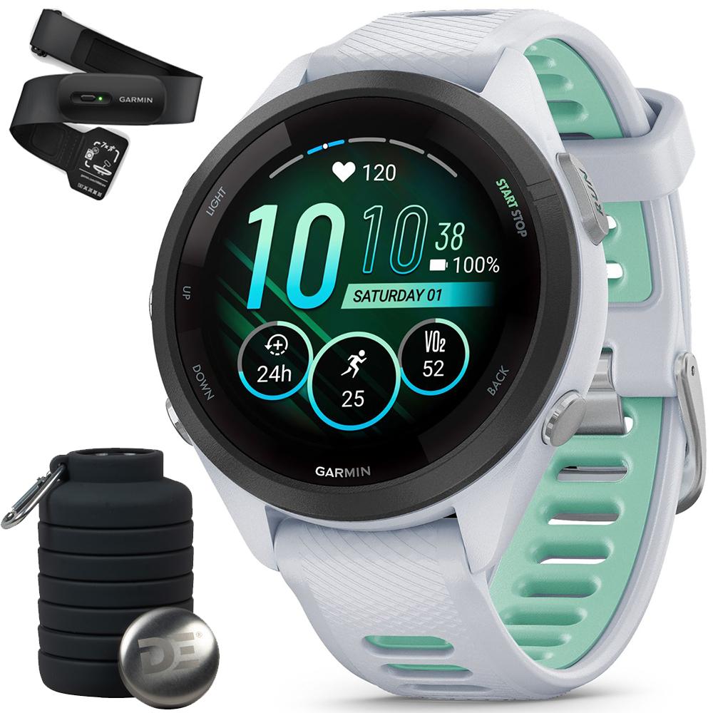 Garmin Forerunner 265S GPS Smartwatch Whitestone/Neo + Bottle & Heart Strap M-XL