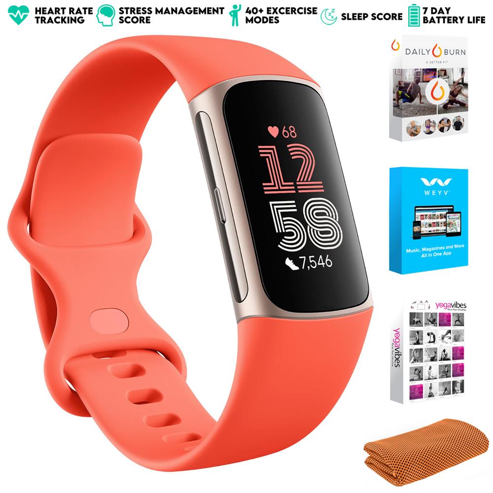 Fitbit Charge 6 Advanced Fitness & Health Tracker, Coral w/ Fitness Bundle