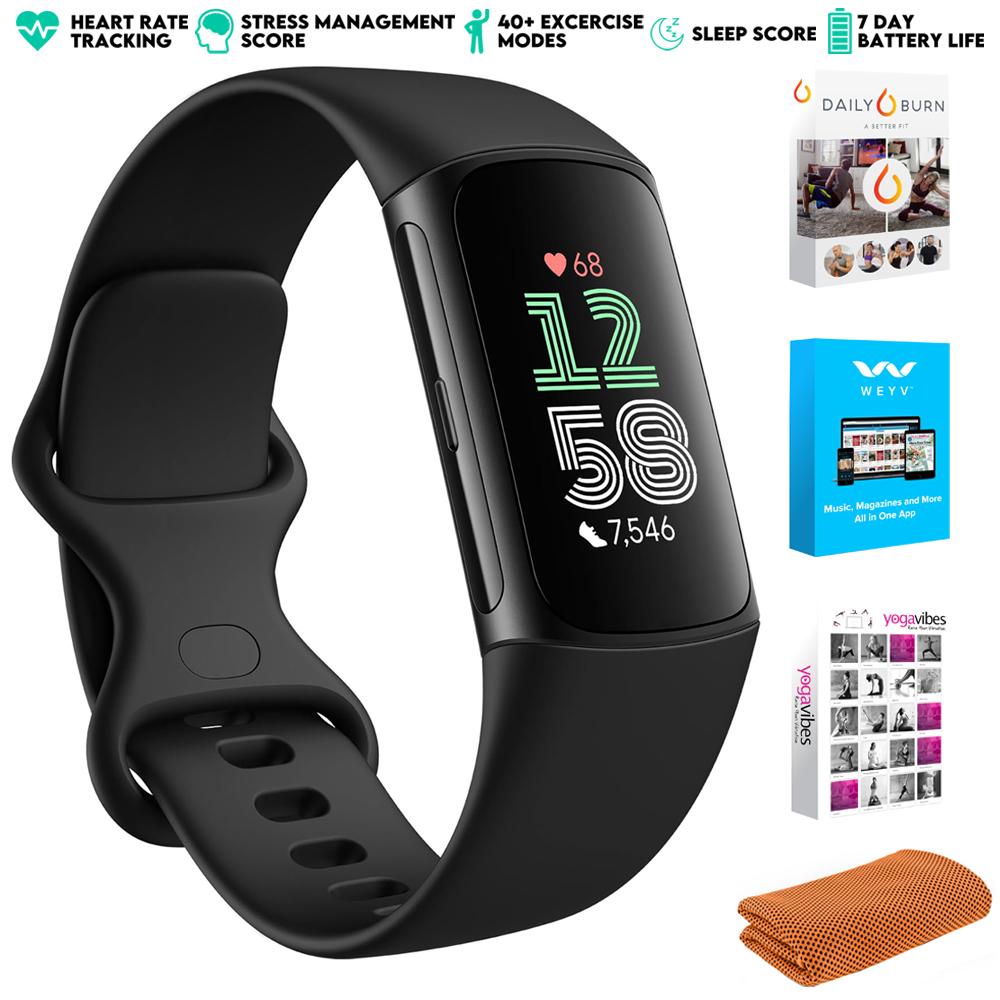 Fitbit Charge 6 Advanced Fitness & Health Tracker, Obsidian w/ Fitness Bundle