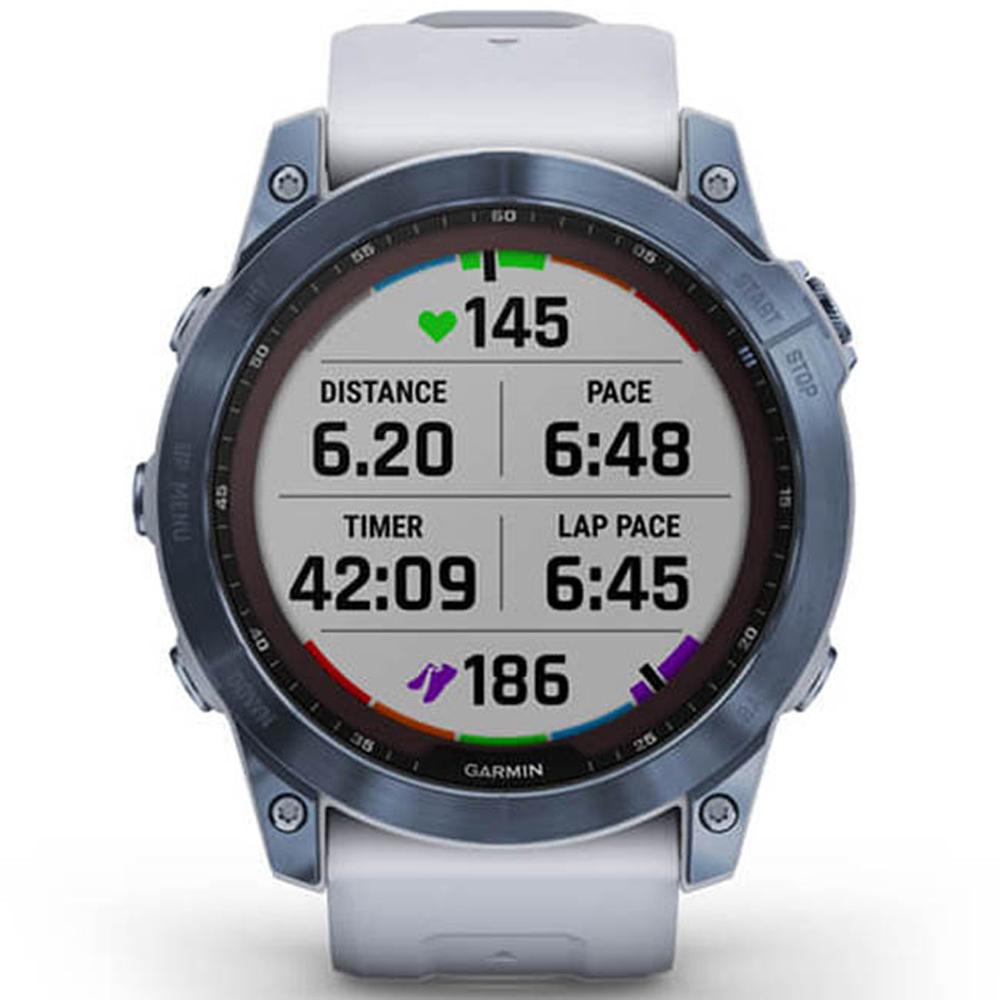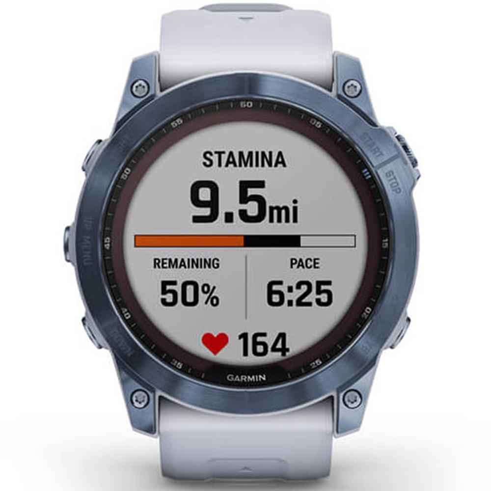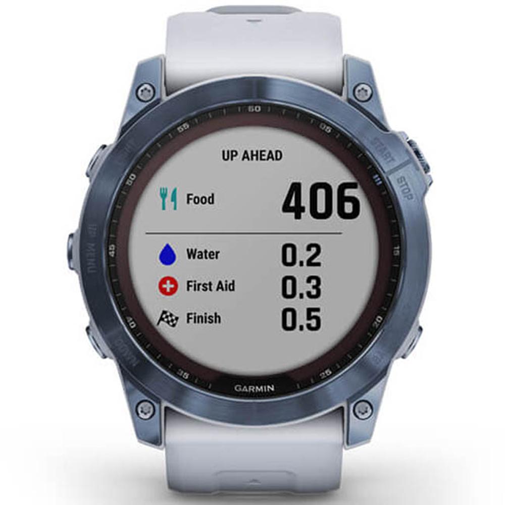 Garmin Fenix 7X Sapphire Solar Smartwatch - Mineral Blue Titanium with Whitestone Band