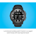 Bold. Rugged. Dual-layered bezel. Just a few words we like in a row. Especially when it houses a high-resolution digital display with smart functionality. Plus, this watch is water-rated to 10 ATM and is thermal- and shock-resistant. So you can do what you do.