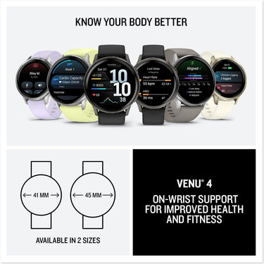 Purpose-built with advanced health and fitness features, the Venu 4 GPS smartwatch is your on-wrist support to help you better understand your body and make healthier decisions.