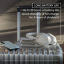 - Up to 30-hour battery life with quick charging (3 min charge for 3 hours of playback)