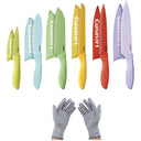 Cuisinart 12 Pcs Ceramic Coated Color Knife Set w/ Blade Guards + Safety Gloves