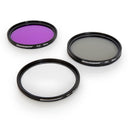 Three basic filters that will be used often, giving you the images you love! The UV filter will protect your camera lens, the FLD will correct unbalanced indoor lighting, and the polarizer will act as 'sunglasses' in bright conditions producing vibrant colors.