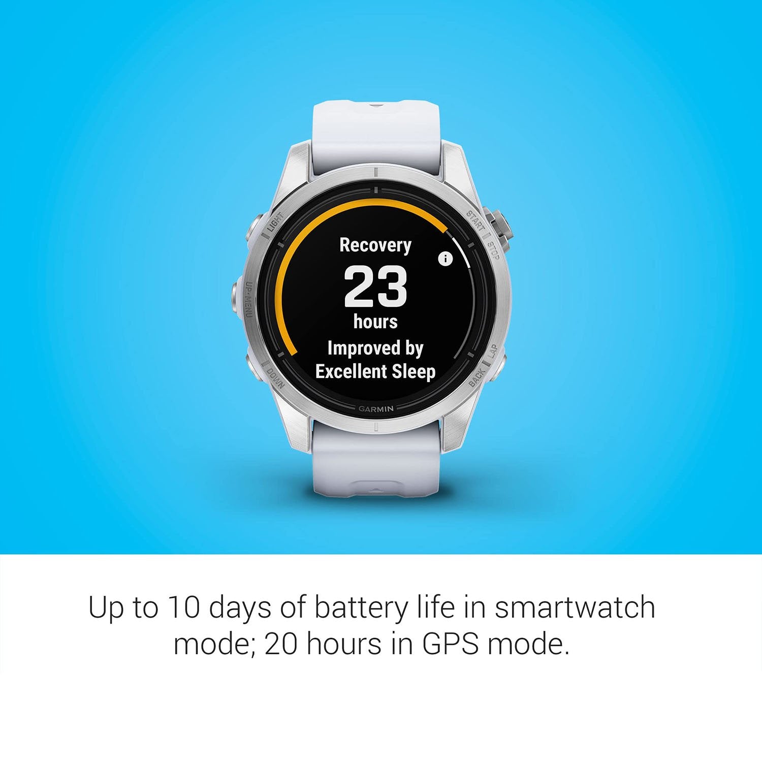Get up to 10 days in smartwatch or up to 20 hours in GPS mode.