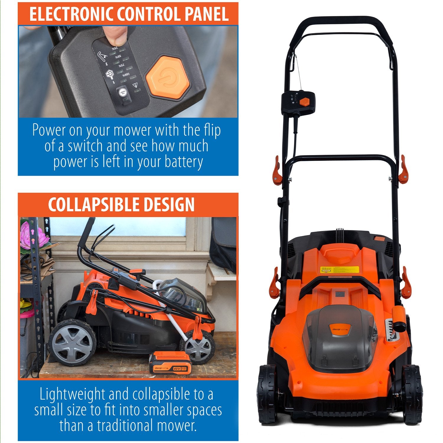 Deco Home Cordless Lawn Mower 16" Deck, 40V Battery, Push Start, 45L Grass Bag, Side Chute