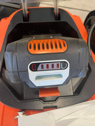 Power on your mower with the flip of a switch and see how much power is left in your battery
