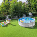 Intex 20 Foot x 52 Inch Steel Frame Round Outdoor Above Ground Swimming Pool Set, Gray