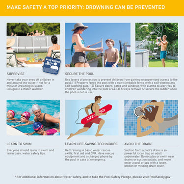 Includes a 110-120V Krystal Clear™ cartridge filter pump, pump flow rate: 1,500 Gph