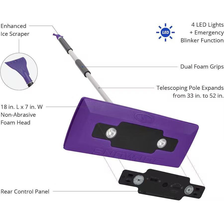 Snow Joe Compact 4-in-1 Telescoping Snow Broom with Ice Scraper and LED Light, Purple