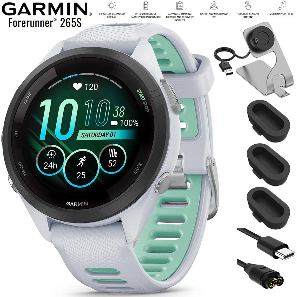 Garmin Forerunner 265S GPS Smartwatch Whitestone/Neo with Charging Dock Bundle