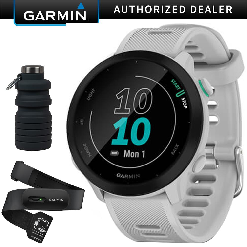 Garmin Forerunner 55 GPS Running Watch & Activity Tracker, White +HRM 200 (M-XL) Bundle